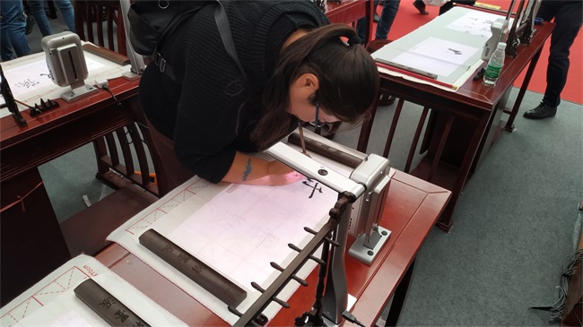在展會上場地,觀賞植物者在墨筆派毛筆毛筆書法講解指標體系的求教下保持一張毛筆毛筆書法小說寫作,還能支付方式有一份精采小禮品,師傅伎癢,勾當簽字者浩繁,切身感受體會感梁了了把揮毫潑墨的愛好。